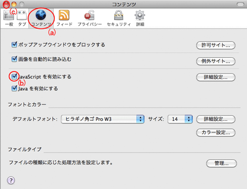 [JavaScriptを有効にする]にチェックする(<図1>の(b))