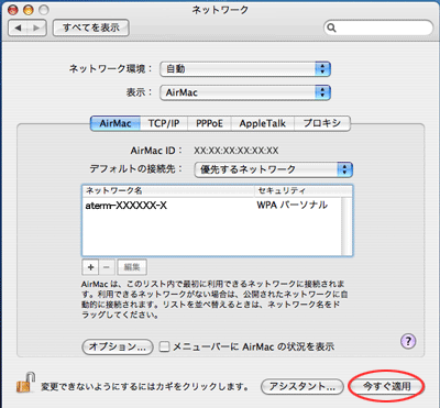 [表示]を[AirMac]にして、[AirMac]タブをクリックする |