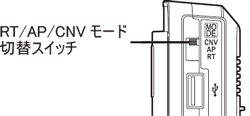無線LAN子機WR9500NのRT/AP/CNVモード切替スイッチがCNV側になっていることを確認する |