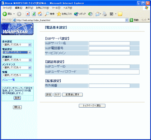 - ここに市外局番を入力しない場合は、電話機ポートに接続した電話機からIP電話をかけるときに