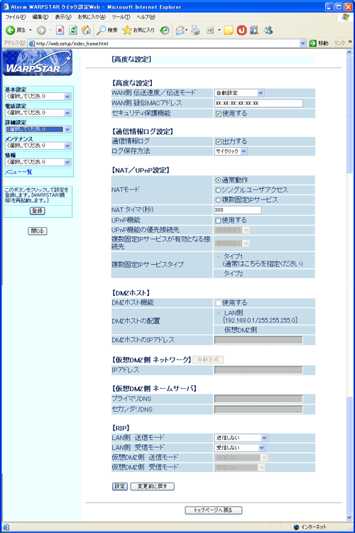 WAN側 擬似MACアドレス (初期値:ご利用の機種により初期値は異なります。) |
