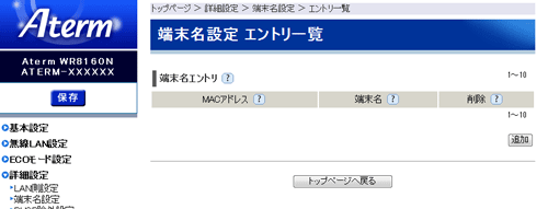 本商品では、[端末名エントリ]に10個の端末名を設定できます。