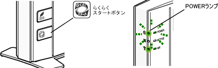 無線LANアクセスポイント(親機)のらくらくスタートボタンを長押し(約6秒)、POWERランプが緑点滅になったら放す