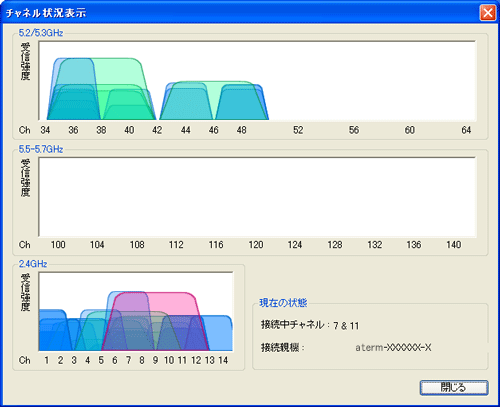 近くのアクセスポイントがどのチャネルで使用されているか表示します。