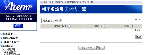 | 端末名設定 エントリ一覧 |