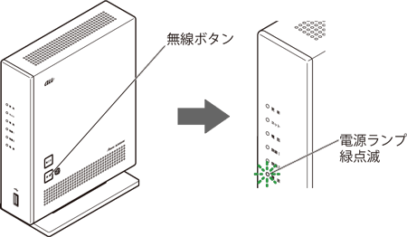 本商品(親機)の無線ボタンを長押しし、電源ランプが緑点滅になったら放す