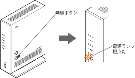 もう一度本商品(親機)の無線ボタンを長押しし、電源ランプが橙点灯状態になったら放す |