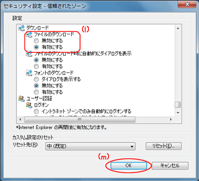 [ファイルのダウンロード]の[有効にする]を選択する(<図5>の(l)) |