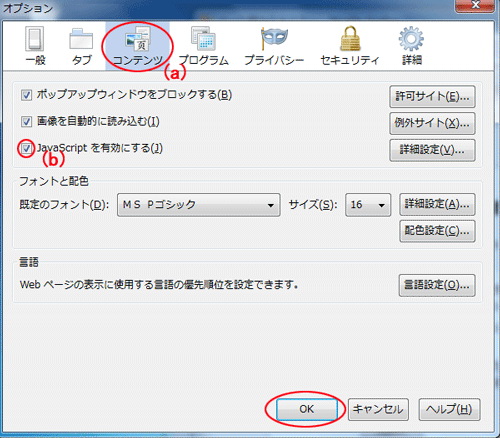 [JavaScriptを有効にする]にチェックする(<図1>の(b))