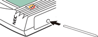 WL54SE2/WL54SE(ETHERNETボックス)の底面にあるリセットスイッチを、細い棒状のもの(つまようじなど電気を通さない材質のもの)で押し続け、POWERランプが赤点滅を始めたら離す
