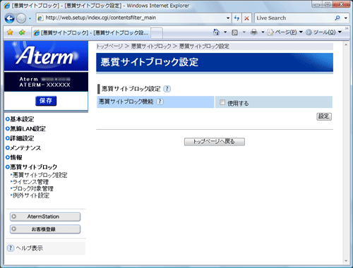 | 悪質サイトブロック機能の基本設定を行います。 |