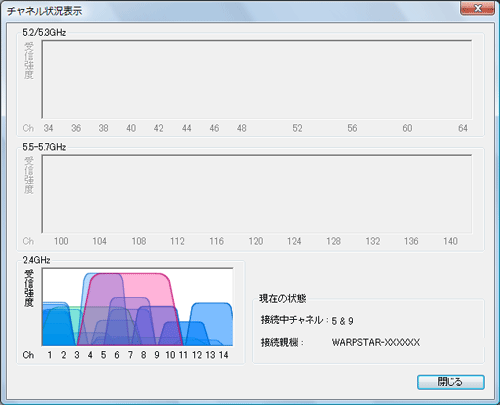 近くのアクセスポイントがどのチャネルで使用されているか表示します。