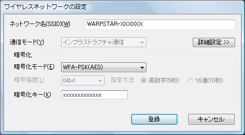無線LANアクセスポイント(親機)に暗号化が設定されているとき |