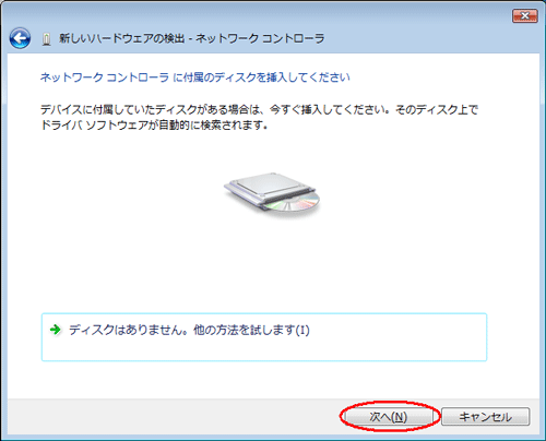 「ネットワークコントローラのドライバソフトウェアをオンラインで検索しますか?」画面が表示された場合は、「オンラインで検索しません」をクリックする |