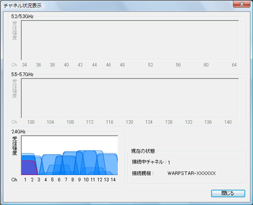 近くのアクセスポイントがどのチャネルで使用されているか表示します。