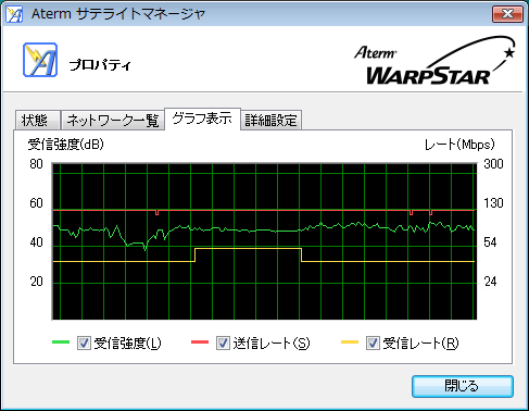 現在の無線の受信強度をグラフで表示します。 |