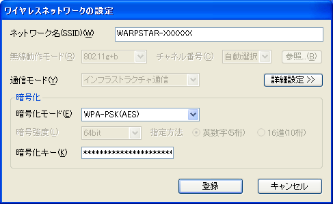 WPA-PSK(TKIP),WPA-PSK(AES)は、Windows(R) XP (Service Pack2)搭載のパソコンでWL300NC/WL130NC/WL54SC2/WL54SC/WL54AG/WL54SU2/WL54SU/WL54TUをご利用の場合のみ、ご利用になれます。