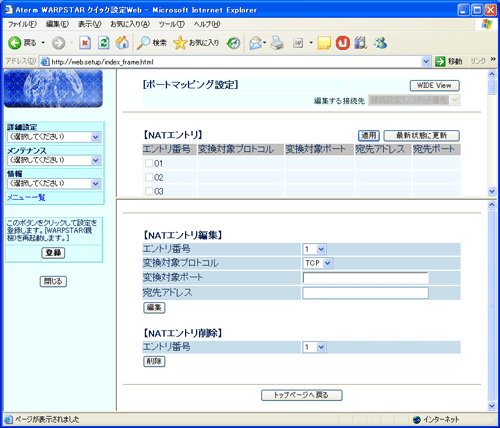 複数のNATエントリを編集する場合には、上記の1〜2を繰り返してください。 |