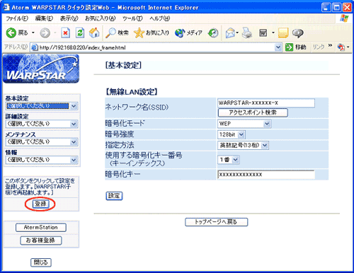| Windows(R) XP/2000 Professionalの設定方法はこちら Windows(R) Me/98SEの設定方法はこちら Macintoshの設定方法はこちら |