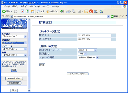 WL54SEでの設定を変更する場合に以下の「クイック設定Web」を使用します。