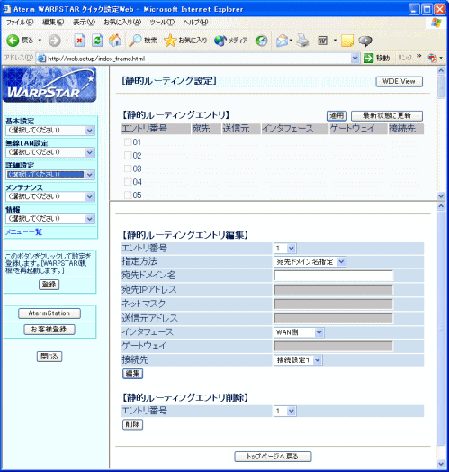 【静的ルーティングエントリを編集する場合は、下記の■静的ルーティングエントリ編集を