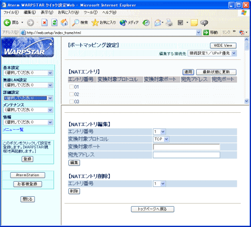複数のNATエントリを編集する場合には、上記の1〜2を繰り返してください。 |