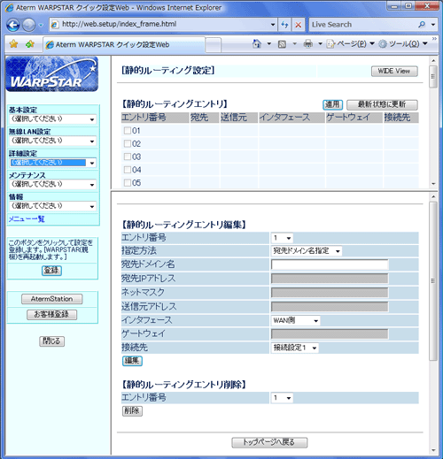 【静的ルーティングエントリを編集する場合は、下記の■静的ルーティングエントリ編集を