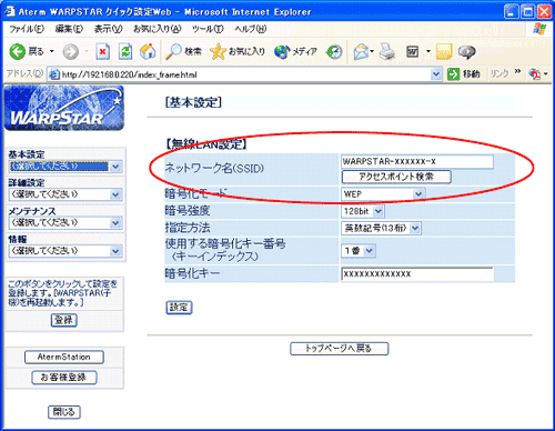 | Windows(R) XP/2000 Professionalの設定方法はこちら Windows(R) Me/98SEの設定方法はこちら Macintoshの設定方法はこちら |