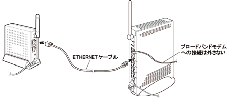 無線LANアクセスポイント(親機)のETHERNETポートには設定するWL54TE(ETHERNETボックス)を1台だけ接続してください。