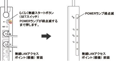 らくらくスタートボタン(SETスイッチ)を長押し、POWERランプが緑点滅になったら離す |