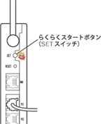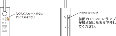 無線LANアクセスポイント(親機)背面のらくらくスタートボタン(SETスイッチ)を押し、前面のPOWERランプが緑点滅になったら離す