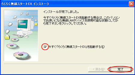 らくらく無線スタートEXでの無線設定が完了します。 |