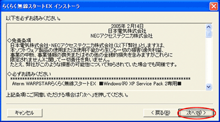 あとかららくらく無線スタートEXを起動するときは、[スタート]をクリックし、[プログラム]−[らくらく無線スタートEX]−[らくらく無線スタートEX]をクリックします。