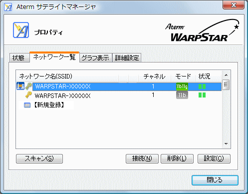ネットワーク一覧で選択したネットワークに接続します。