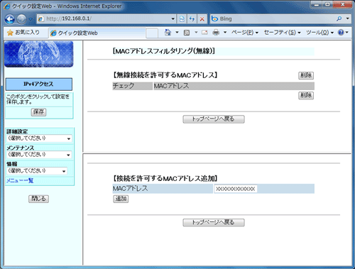 ※無線接続を許可するMACアドレスを編集する場合は、下記を参照してください。