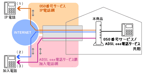 ADSL one電話サービスと共用の場合は、ADSL one電話サービス経由でご利用になれます。
