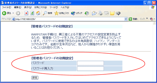 管理者パスワードは、WL54SEを設定する場合に必要となりますので、控えておいてください