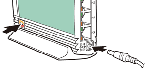 WL54SE側面のらくらくスタートボタンを押しながら、ACアダプタのプラグを接続し、WL54SE前面のAIRランプが赤点滅したららくらくスタートボタンを離す |