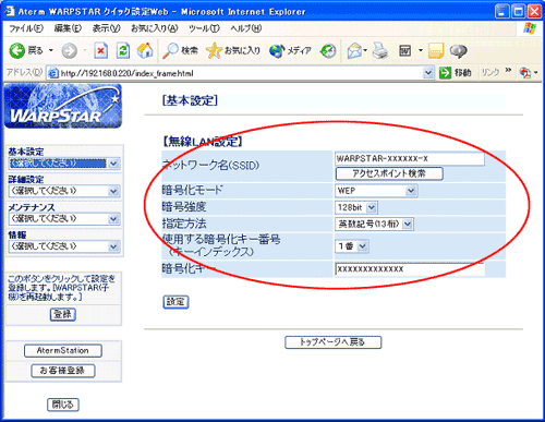 無線LANアクセスポイント(親機)に暗号化の設定をしているときは、以下の手順で設定を