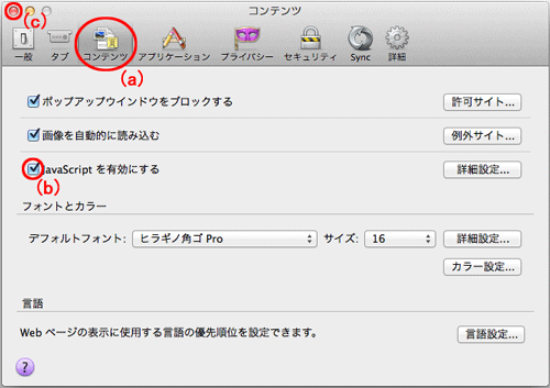 [JavaScriptを有効にする]にチェックする(<図1>の(b))