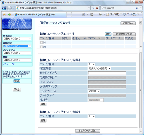 【静的ルーティングエントリを編集する場合は、下記の■静的ルーティングエントリ編集を