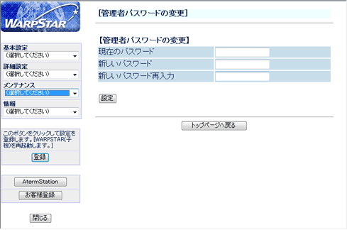 | [管理者パスワードの変更] |