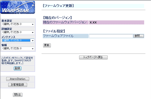 次の手順で、WL54SE2のバージョンアップができます。 |