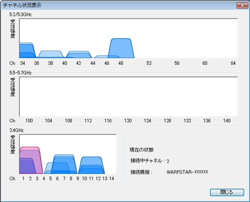 近くのアクセスポイントがどのチャネルで使用されているか表示します。