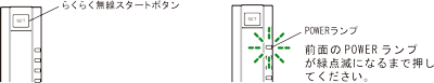 らくらく無線スタートボタンを長押し、POWERランプが緑点滅になったら離す |