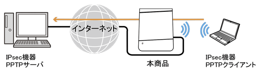 IPsecまたはPPTPによるVPN接続を使用することにより、インターネットを経由してLAN側のIPsec機器/PPTPクライアントからWAN側のIPsec機器/PPTPサーバにアクセスすることができます。また、WAN側のIPsec機器/PPTPクライアントからLAN側のIPsec機器/PPTPサーバにアクセスするように設定することも可能です。