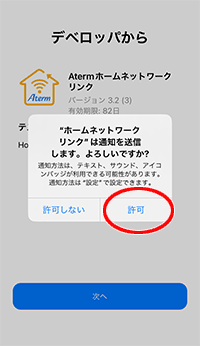 • iOS端末をご利用の場合、「”ホームネットワークリンク”は通知を送信します。よろしいですか?」が表示されたら、「許可」をタップしてください。「許可しない」をタップすると本アプリにログインできません。