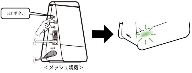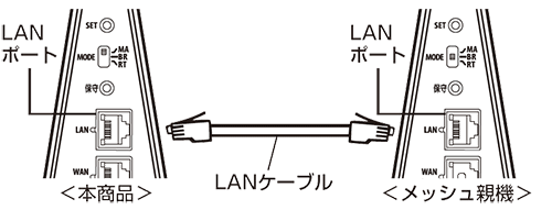 「LANケーブルを使用してメッシュ親機と接続する」を参照してください。<本商品のSETボタンを使用して設定する場合>