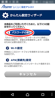 ① かんたん設定ウィザードの「①パスワードの設定」をタップします。