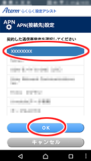 • 「 APNリストの更新に失敗しました。」と表示された場合は、[キャンセル]をタップしてください。